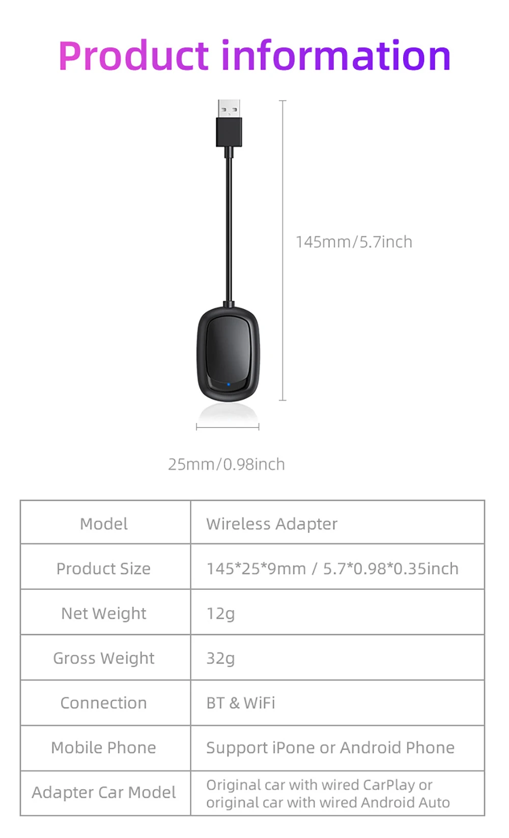 Model C Only Wireless CarPlay Adapter Product information
